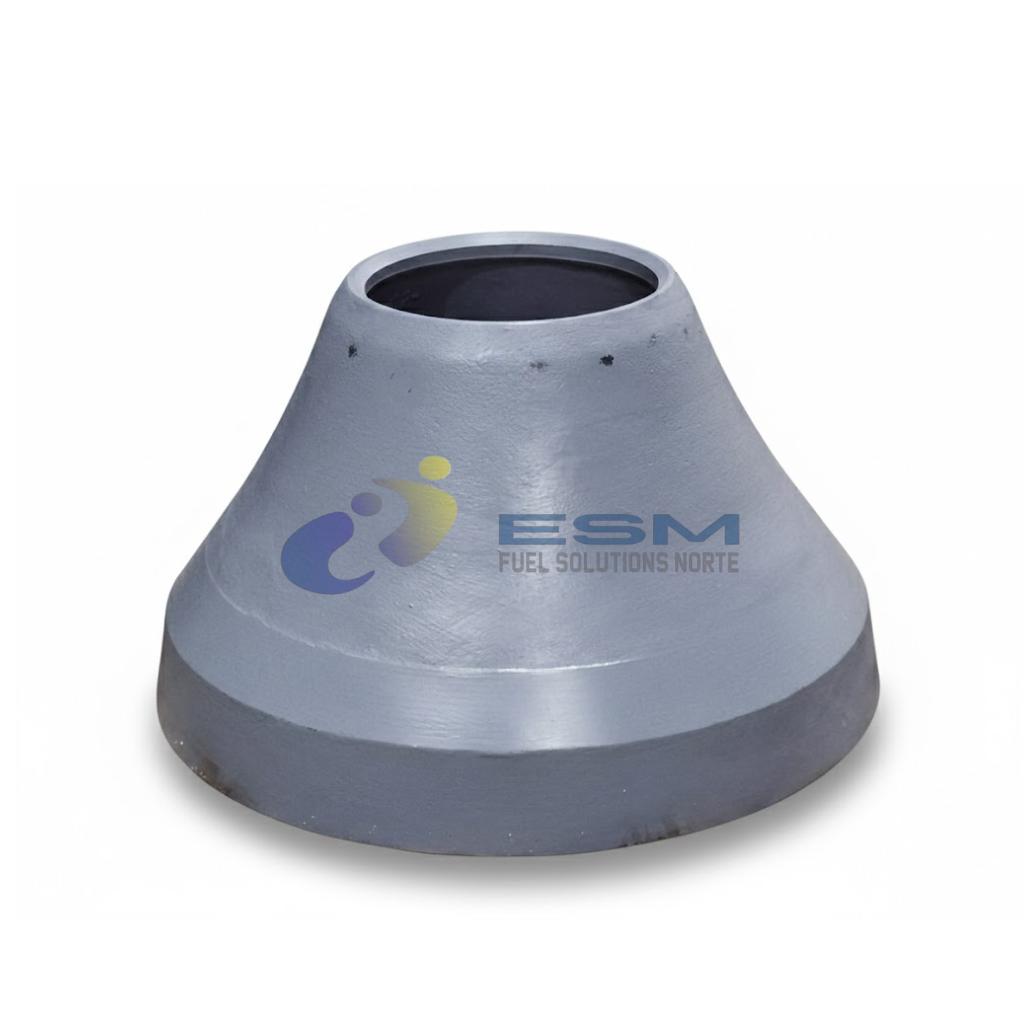 El Mantle B es un componente de desgaste instalado en el eje principal de la trituradora de cono, encargado de realizar la acción de trituración al comprimir el material contra los cóncavos. La designación B identifica un perfil de cámara específico, diseñado para aplicaciones que requieren un balance adecuado entre capacidad de procesamiento y tamaño final del producto. Fabricado en acero al manganeso de alta resistencia, ofrece excelente capacidad de endurecimiento por trabajo y alta resistencia al impacto, lo que garantiza una larga vida útil en condiciones exigentes. Su diseño favorece un desgaste uniforme, mejora la eficiencia de trituración y asegura una operación estable, continua y confiable.
